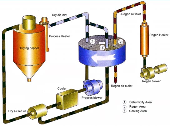 HD series honeycomb rotary dehumidifying dryer, suitable for hygroscopic plastic materials�� drying. The honeycomb rotor is applied for high-efficiency dehumidification
